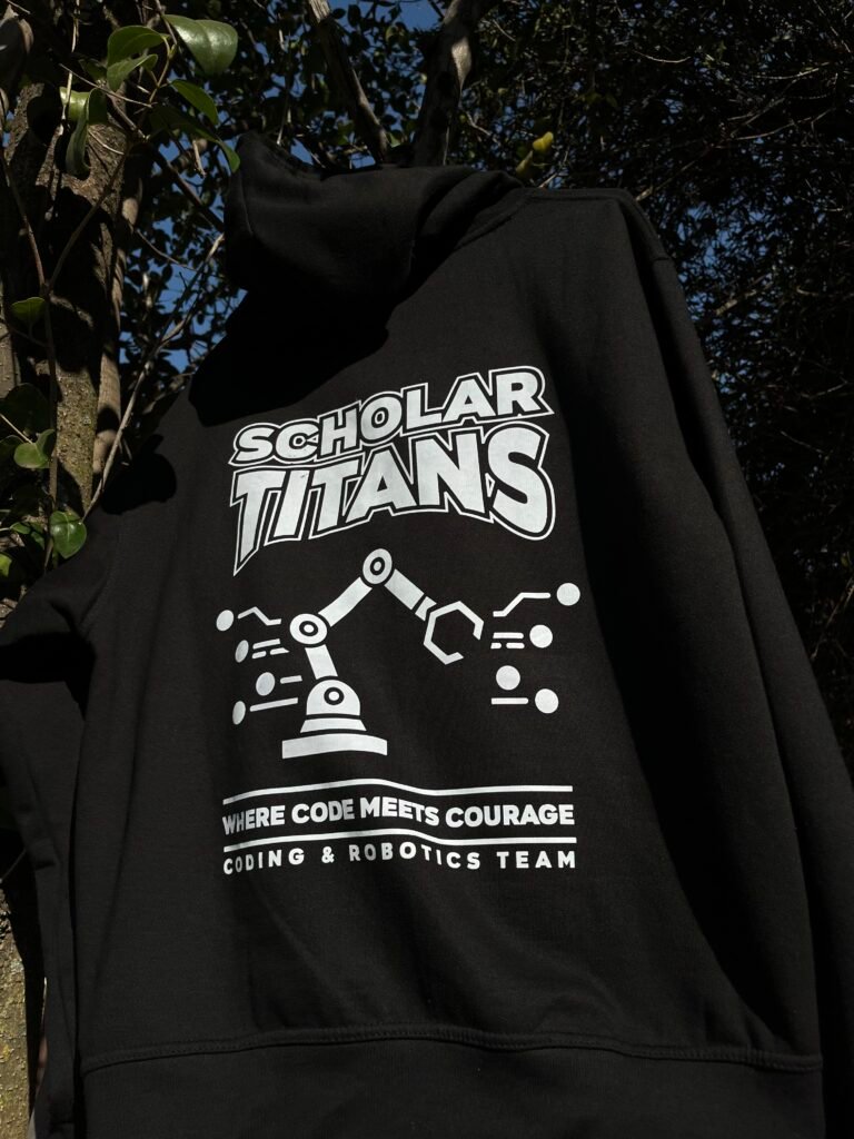 Introducing the custom Scholar Titans branded hoodies, a bold and stylish way to represent your journey in Coding & Robotics. Designed specifically for learners at schools we proudly collaborate with, each hoodie stands as a symbol of your dedication, passion, and growing tech skills.